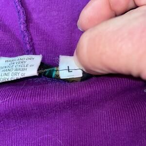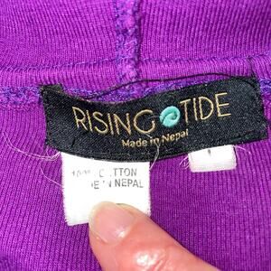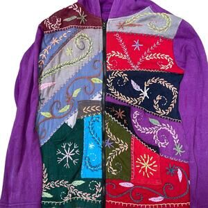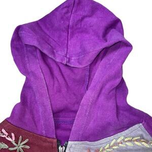 Rising Tide Women's Sz Large Hoodie Embroidered BOHO Wearable Artsy Full Zip Distressed Patchwork Purple Bohemian Patchwork