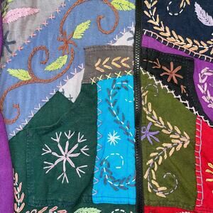 Express your unique style with this beautiful Rising Tide wearable art hoodie! Featuring intricate embroidery and a vibrant patchwork design, this soft 100% Cotton full-zip jacket is perfect for adding a bohemian touch to any outfit.