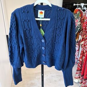 Farm Rio: Navy Blue Mixed Stitches Knit Cardigan