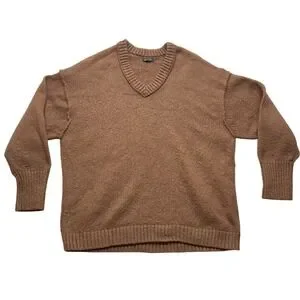 Wild Fable Brown V-Neck Oversized Pullover Sweater Small Recycled Polyester