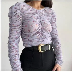 *Zara lavender floral print ruched semi-sheer blouse.