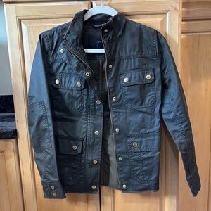Rugged and stylish military jacket. Features multiple pockets and button details. Women’s petite small. Brass details, super cute! Olive green/army color.