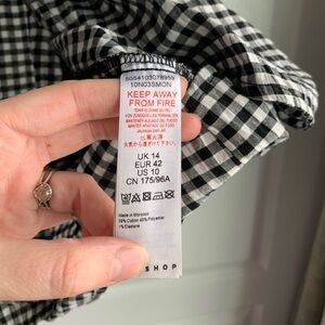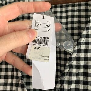 Stylish midi dress with a monochrome checkered pattern. Features puff sleeves and a flattering wrap design. New with tags, size 10