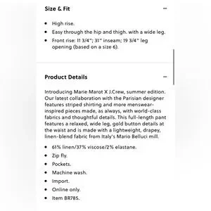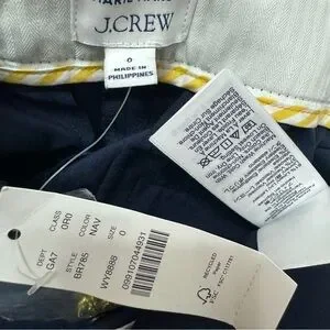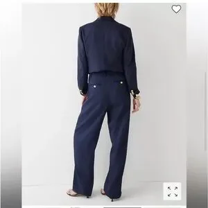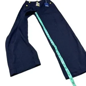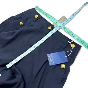 J. Crew x Marie Marot Sz 0 sailor wide leg pants linen blend navy gold buttons