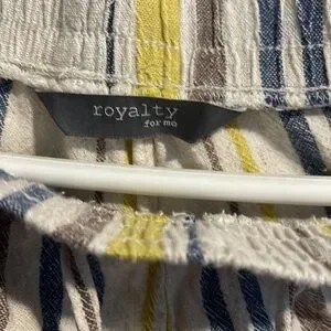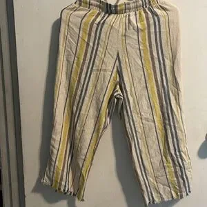 Stylish kids' bottoms featuring a vibrant yellow and blue stripe pattern. Perfect for playful days.
