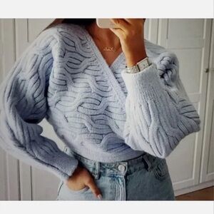 Chic light blue / periwinkle wrap sweater. Blogger fave! Features a wrap design and cozy texture. Ideal for layering. BNWT, never worn. smoke & pet free home.