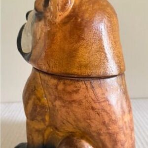 1960’s Danish Glazed Leather Sculpture & Ceramic Bulldog Dog Treat Cookie Jar