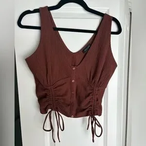 Brown tank top, never worn. From the brand New Look, bought on ASOS. Ties can be adjusted to make to tighter and more or less cropped.