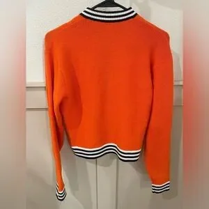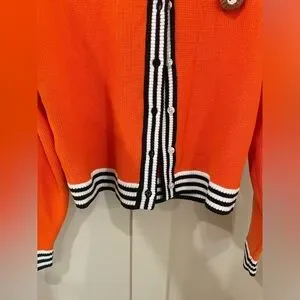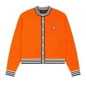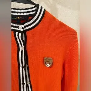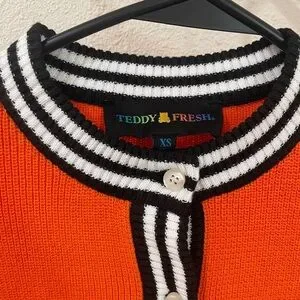 Teddy Fresh Orange Button Up Bear Cardigan with Striped Trim