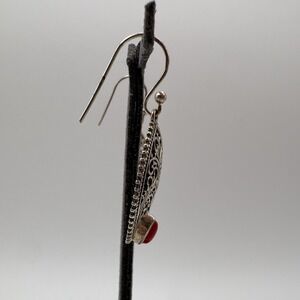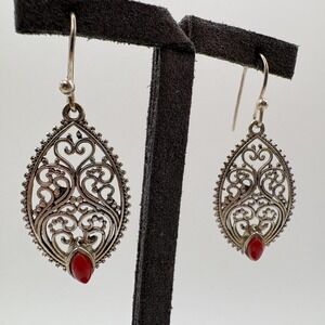 Sterling Silver Red Stone Teardrop Filigree Dangle Drop Earrings Pierced