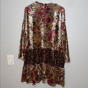 Easel Los Angeles Crushed Velvet Tiered Open Front Floral Kimono Small