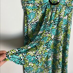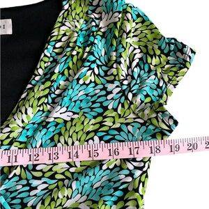 Studio I Green and Blue Leaf Print Cap Sleeve Dress Spring Office Flowy Sz 16