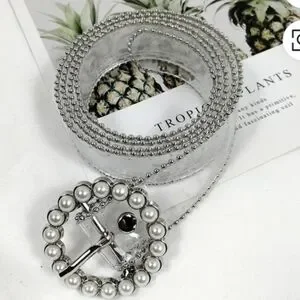 Circle Pearl Buckle Clear Transparent 2.8" Width Large 39" Length S/M