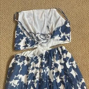 Elegant blue and white floral maxi dress. Perfect for summer occasions.