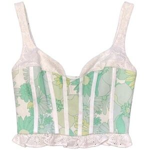 For Love & Lemons Peyton Floral Eyelet Lace Trim Structured Bustier Top Small