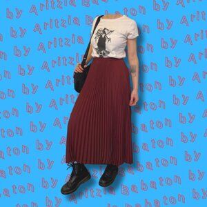 Red pleated maxi skirt. Never worn and still has tag with original price. Has a nice weight to it so it doesn't wrinkle and always maintains shape while wearing. Comfortable band, nice deep burgundy red color.