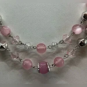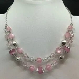PALE PINK SILVERTONE LAYERED STRAND ADJUSTABLE CHOKER NECKLACE