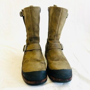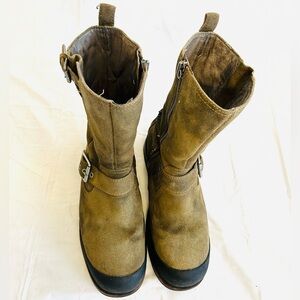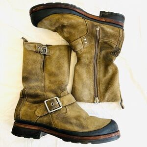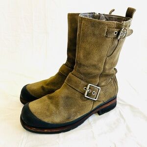 Rugged Suede Leather, Side Zippered, Upper and Lower Buckles, Shearling inside sole
