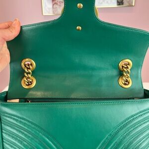Beautiful Gucci Small GG Marmont Matelasse in hard to find green. In like new condition with minimal signs of wear.