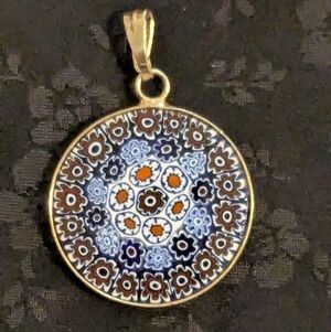 Gold Over Sterling Silver Red And Blue Millefiori Glass Floral Pendant