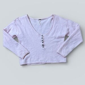 Free People women’s cashmere henley sweater featuring a relaxed, boxy silhouette with a slightly cropped length. Designed with exposed seaming throughout and a henley button neckline. Lightweight, ultra-soft, and perfect for everyday layering.