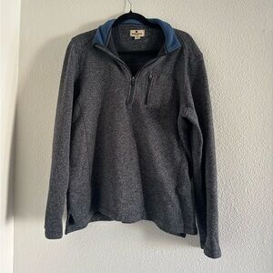 Cozy zip-up sweater by Woolrich. Charcoal body with a blue trim. Ideal for layering. Size Large. NEW TO POSHMARK: Sign up with code TALLGIRLSCLOSET to save $10.