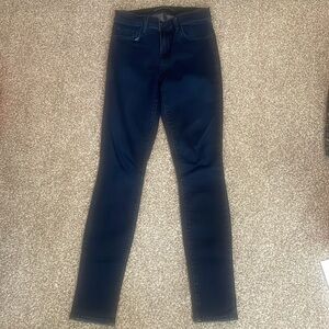 J Brand Skinny Jeans in dark wash “atmosphere”. Excellent used condition, Waist is approximately 12.5” rise is approximately 8.25” and Inseam is approximately 28.5”