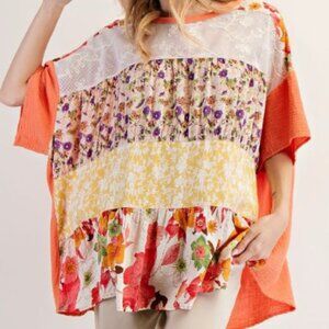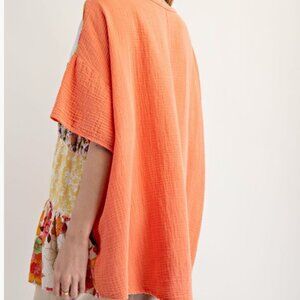 041. FLORAL PRINT MIX MINERAL WASHED COTTON GAUZE TUNIC TOP