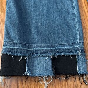 Length has been added in a block pattern of denim material in blue and black. This can easily be trimmed if they are too long.