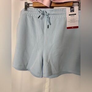 Elevate your workout wardrobe with these stylish women's athletic shorts. Available in soft pink and light blue, these shorts offer comfort and flexibility for any activity.