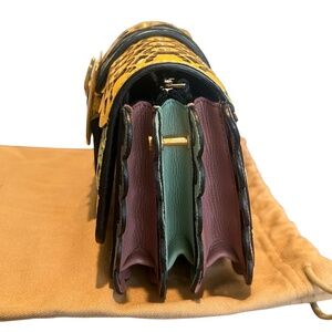 Comes with Black thin shoulder bag strap (never used), Large multicolor strap (never used) , dust bag, paperwork and receipt. Purse was used once for a wedding. From 2016 Collection.