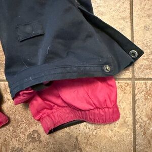 ROXY brand children’s snowsuit size 8. Mainly black and pink design with some white and blue as well. In good used condition with no rips, holes or staining. No hood. Has ventilation pockets on the inner thighs and under the arms. Great for cold weather, skiing, sledding and ice skating.