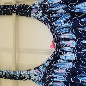 Lilly Pulitzer Loro Romper, Low Tide Navy Sails and Stripes, M