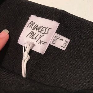 NEW WITH TAGS Princess Polly Huxley Crop Top. Colour is black. Note: this is the TOP ONLY, tag says set but I only have the top not the pants. Cropped length. Sleeveless. Side zipper closure. Looks super cute with a blazer. Excellent new with tags condition. Size is 12, part of their Tall line. Would make a cute gift 🎁
