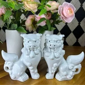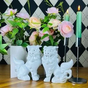 Foo Dog Pair Luxury White Set Ceramic Chinoiserie Guardians Vintage Luxury 6”
