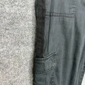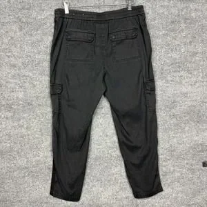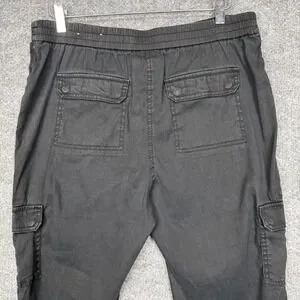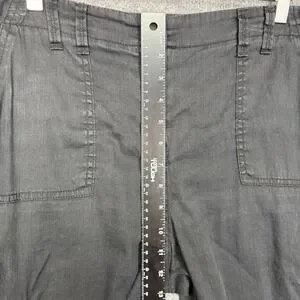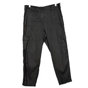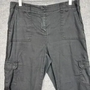 Chicos Pants Womens 1.5 10 Black Linen Cotton Stretch Cargo Crop Elastic Waist. Good pre-owned condition. Some fading/ wash wear. See pictures for details. See photos for measurements. Ships quickly from smoke-free home.