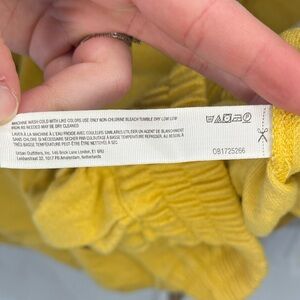 Free People Mustard Yellow Pleated Flowy Wide Leg Boho Pants | XL cotton blend. Oversized. Small spot imperfection on back of pant leg as pictured in last photo.