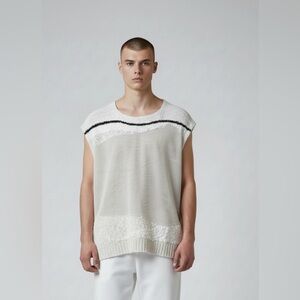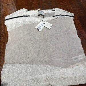By malene birger unisex Cream and Black Textured sheer linen Knit Top NWT