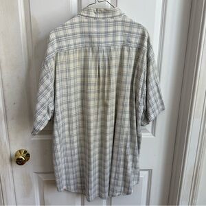 Casual and comfortable plaid shirt. Features short sleeves and button-down style.