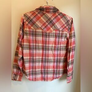 CUMBERLAND OUTFITTERS Pink Plaid Western Shirt with Jewelled Snaps Size Medium