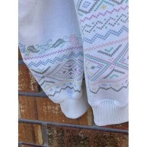 Vintage Blast Grandma Core Geo Floral Crewneck Sweatshirt White Sz L 90s Retro