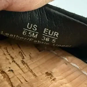 Chic black espadrilles with ankle strap. Comfortable cork insole. Perfect for casual outings.