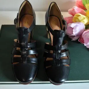 ✨ Clarks Artisan Ciera Gull Black Leather T-Strap Sandals