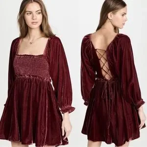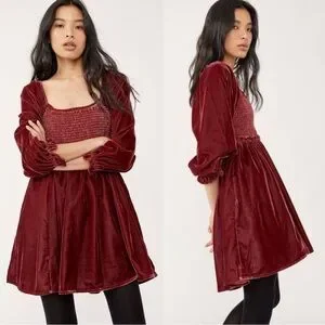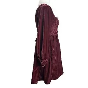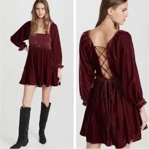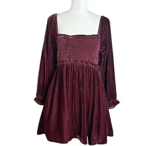Free People Dainty Renaissance Daphne Velvet Mini Dress Burgundy Brown Medium