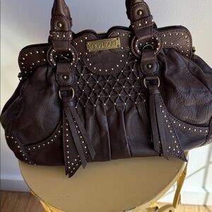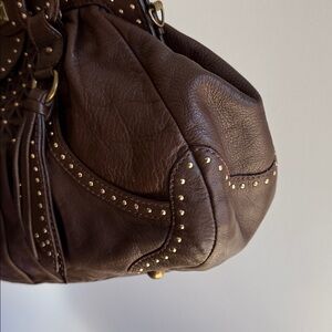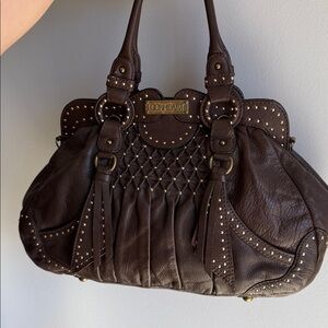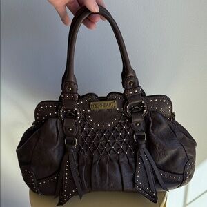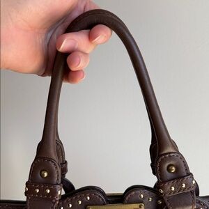 Lockheart Brown Studded Satchel Shoulder Bag