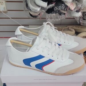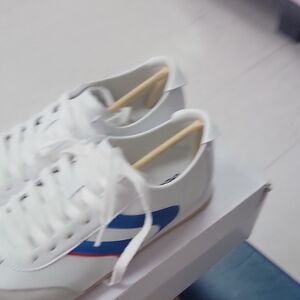 Stylish men's sneakers featuring a sleek white and blue design. Perfect for casual outings and everyday wear.