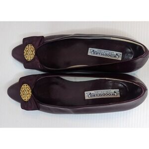 Woodward Collections Women's 10 M Burgundy Leather Flats With Brass Color Emblem