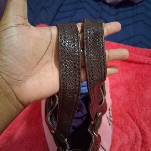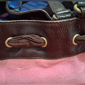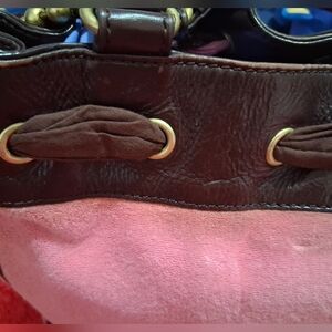 This purse is not in perfect condition, but it has tons of life left. The bag and handles are a little misshapen, there's some wear on the leather (but NO peeling) and gold hardware, and some discoloration on the terrycloth. The inside is not peeling at all! That's always a plus because, as much as we love these bags... they peel like crazy over time!!!