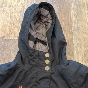 Stylish and durable kids jacket featuring a sleek black design with eye-catching red accents. Perfect for keeping your child warm and comfortable.