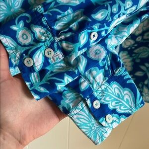 Talbots Plus Blue & White Casual Button Down Floral Beach Cotton Shirt Sz 1X
